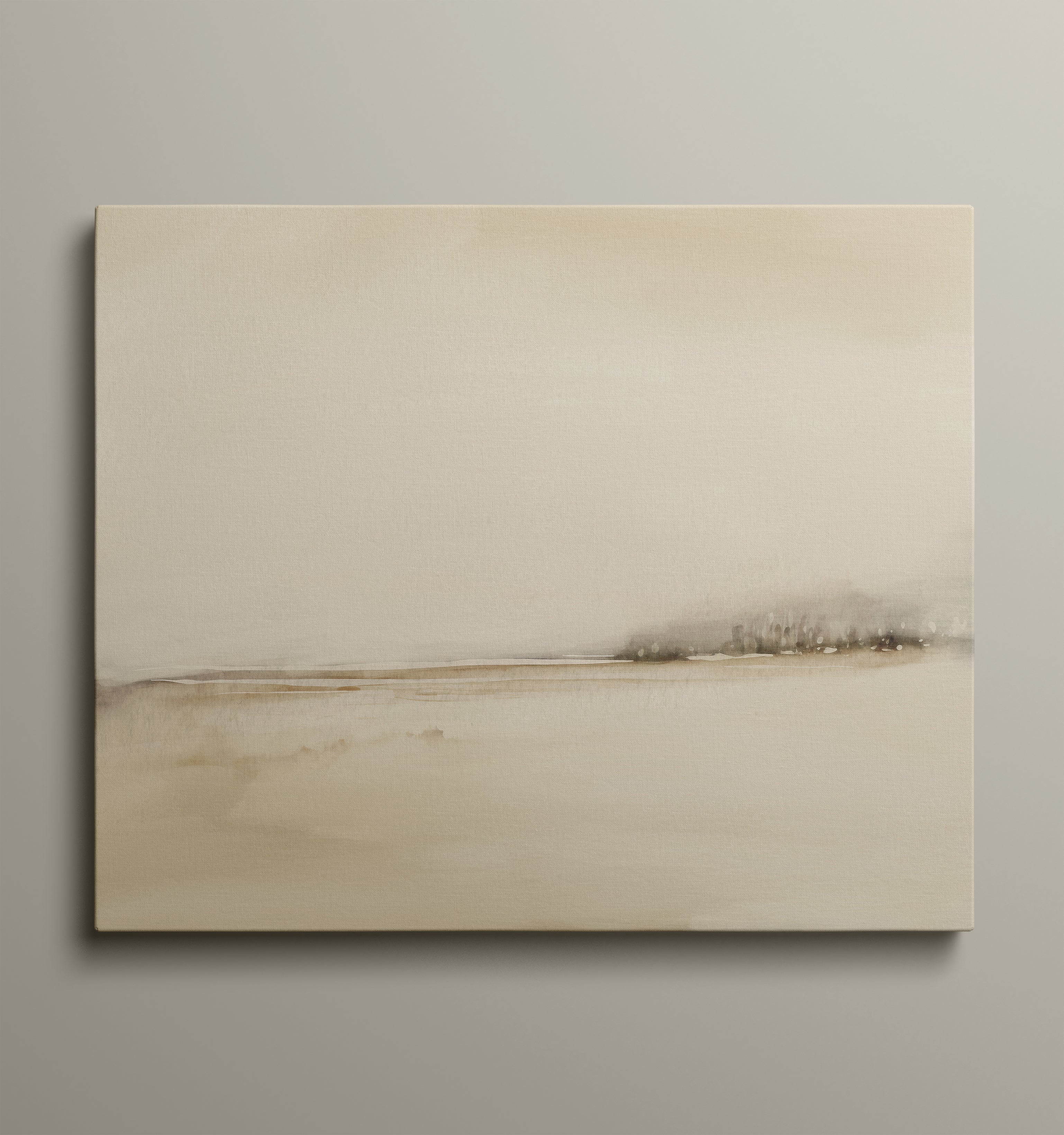 A minimalist landscape in gentle washes of beige and browns. This neutral watercolor abstract brings warmth and calm to any room. A timeless piece that complements both modern and classic interiors. Perfect for creating a serene focal point in your living space or bedroom.