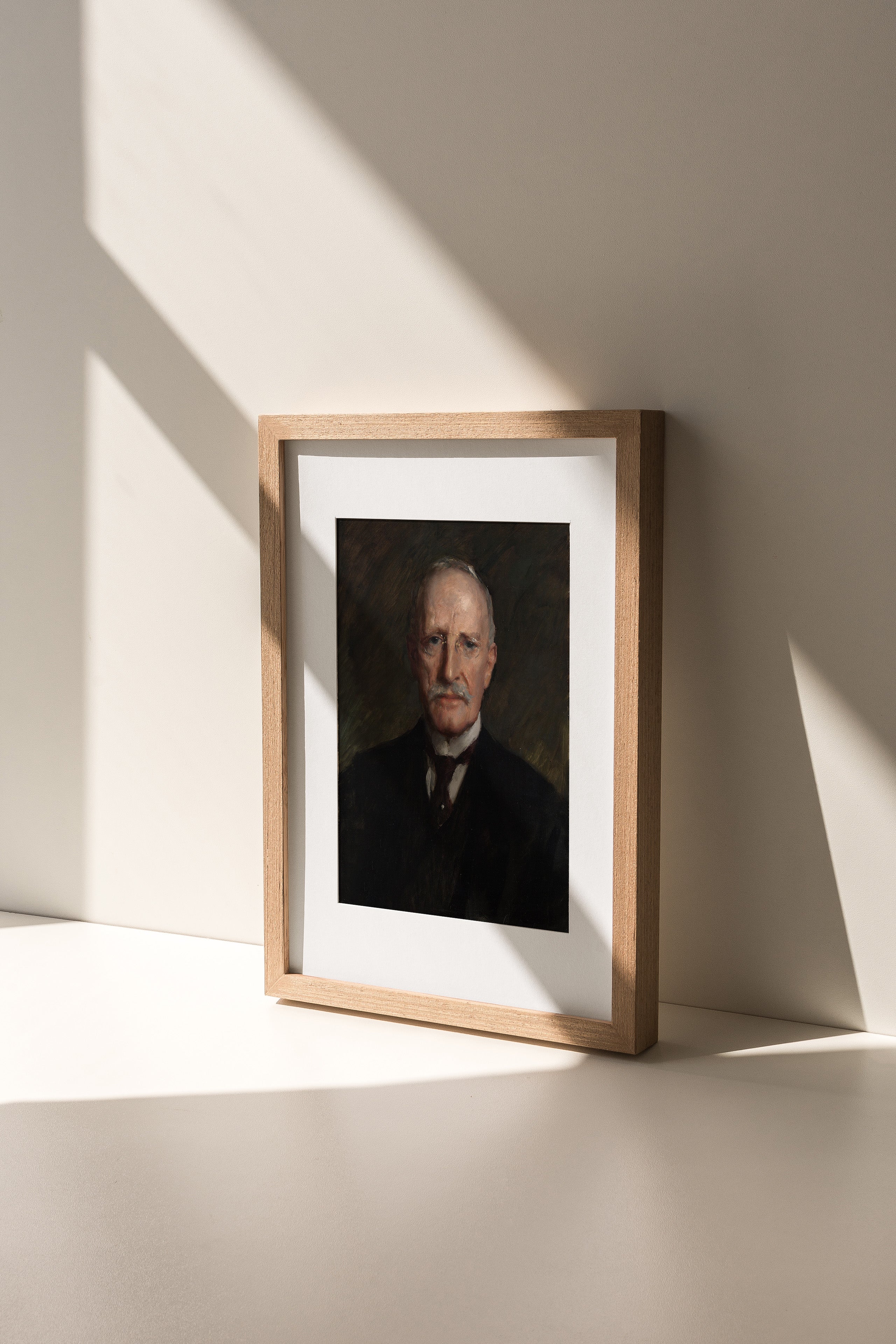 Sir is a classic vintage study of a man painted in deep moody oil paint; a beautiful digital art piece to have featured along the walls of any office or dinning room.