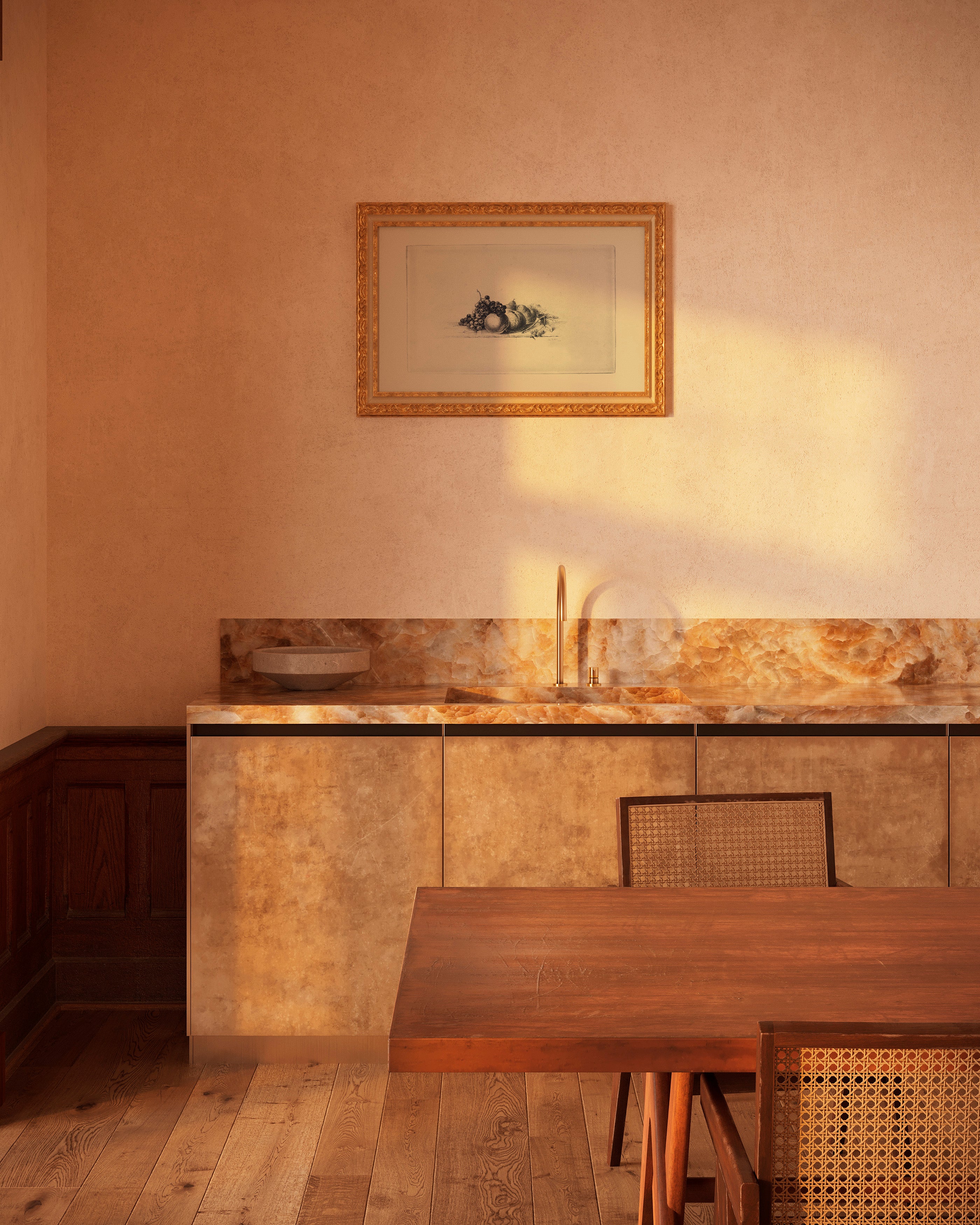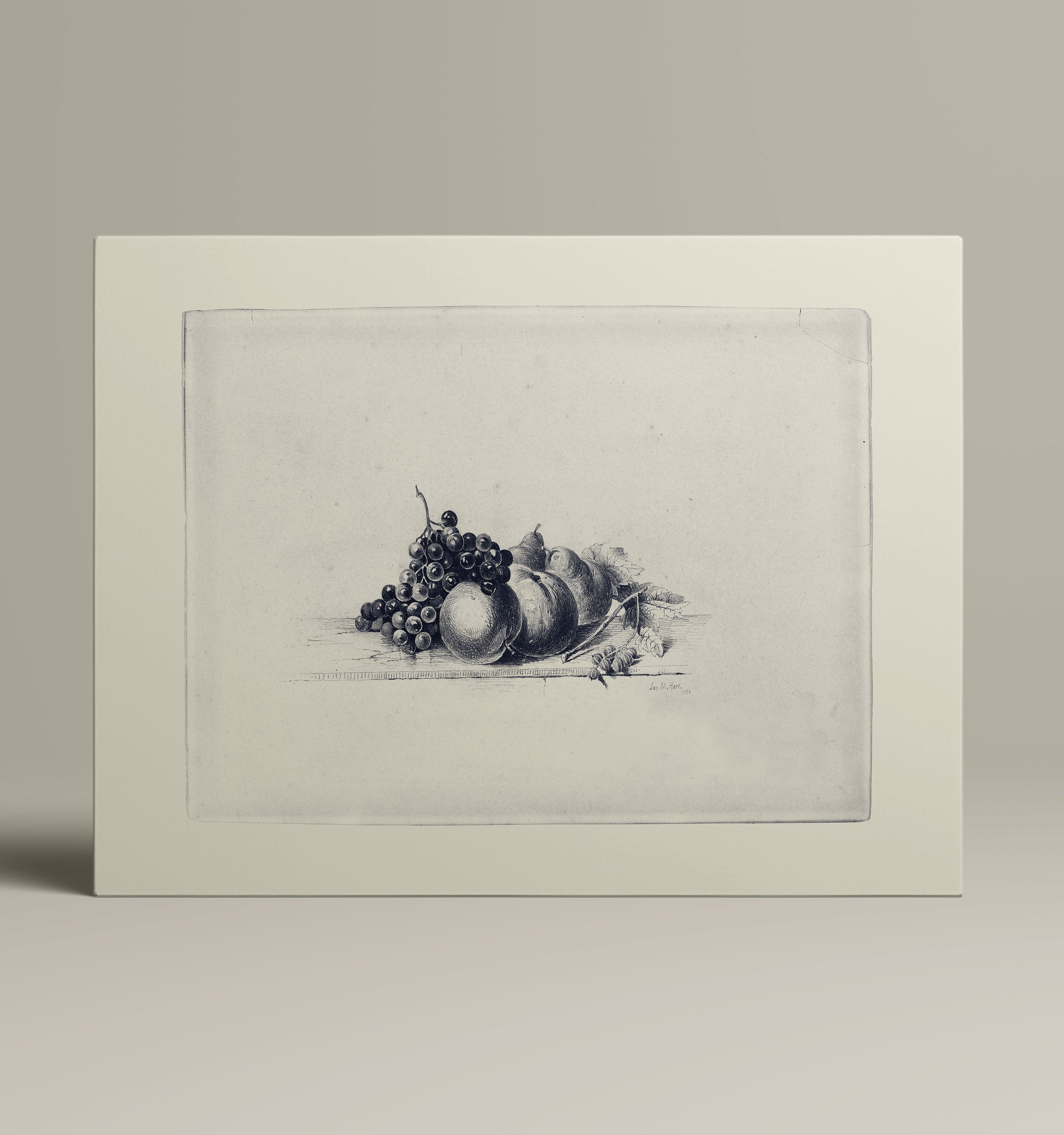This classic sketch depicts the simplistic moment of a drawn bowl of fruits, perfect for your kitchen.